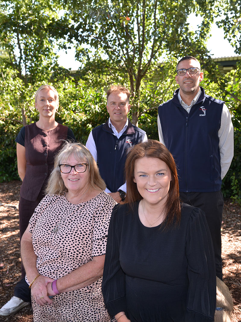 Back Row - Michelle Thompson (Acting Assistant Principal), Scott Phillips (Principal), Michael Columbro (Assistant Principal) Front Row - Marnie Cooper (Assistant Principal), Stephanie Lindsay (Assistant Principal)
